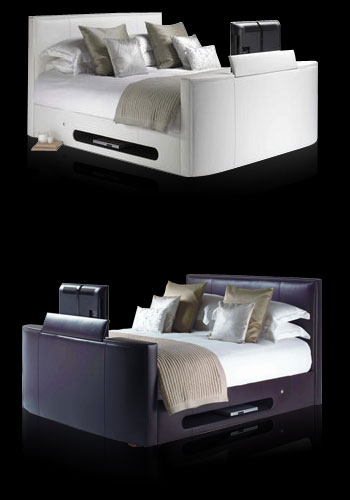 The Chelsea TV Bed has a foot-board that is designed to store your flat panel TV, with the ability to raise the television from out of the foot board with the use of a remote control, allowing you to watch TV in the comfort of your bed. The bed accommodates up to a 26" TV (double and king) or up to a 32” TV for the super king. The TV and mattress are not included. There is an allocated space in the side board for a DVD Player.